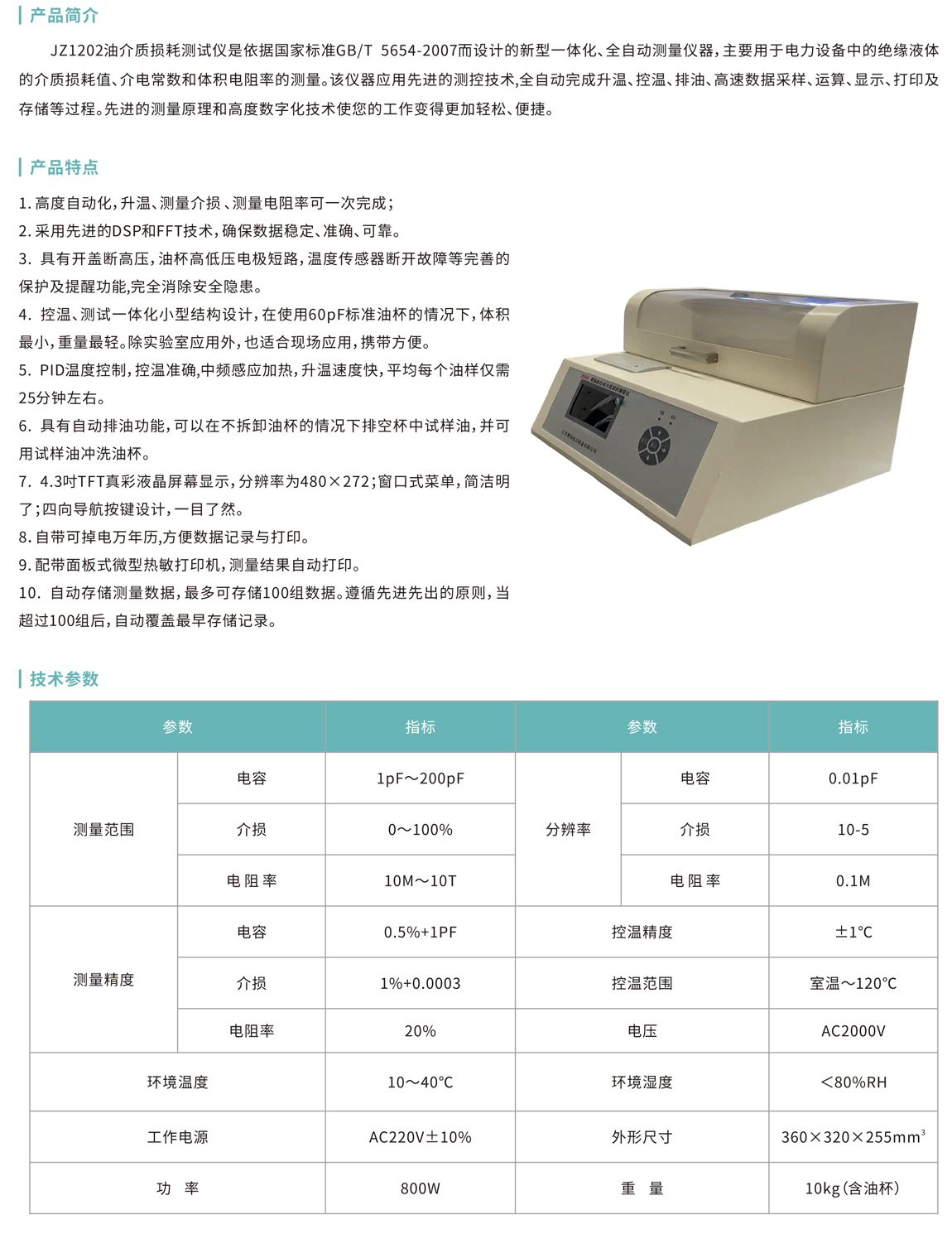 JZ1202油介質(zhì)損耗測試儀是依據(jù)國家標(biāo)準(zhǔn)GB/T5654-2007而設(shè)計(jì)的新型一體化、全自動測量儀器,主要用于電力設(shè)備中的絕緣液體