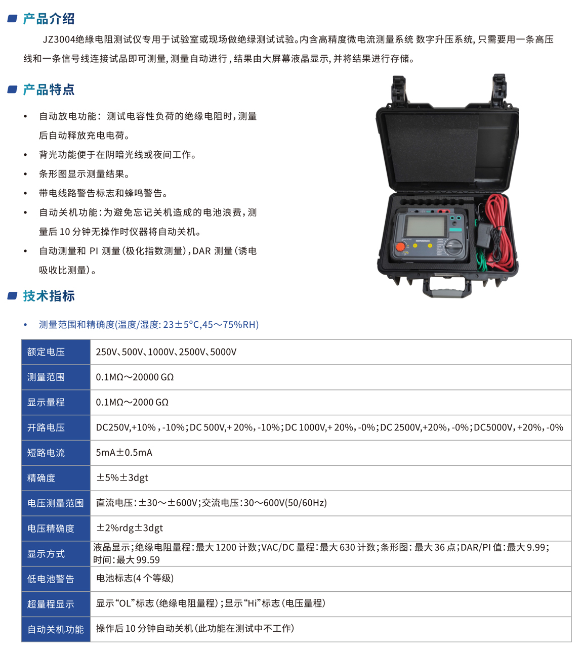 JZ3004絕綠電阻測試儀專用于試驗室或現(xiàn)場做絕綠測試試驗。內(nèi)含高精度微電流測量系統(tǒng)數(shù)字升壓系統(tǒng),只需要用一條高壓 線和一條信號線連接試品即可測量,測量自動進(jìn)行,結(jié)果由大屏幕液晶顯示,并將結(jié)果進(jìn)行存儲。