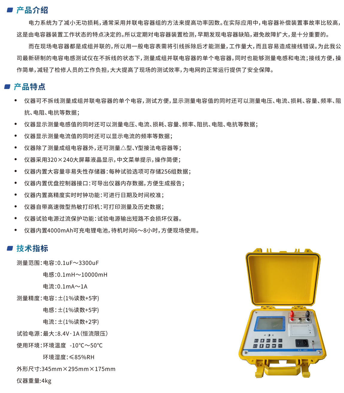 這是由電容器裝置工作狀態(tài)的特點(diǎn)決定的。所以定期對(duì)電容器裝置檢測(cè),早期發(fā)現(xiàn)電容器缺陷,避免故障擴(kuò)大,是十分重要的。
