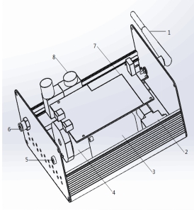3、鋰電池模塊;4、多組分傳感器模塊;5、電源接口;6、進樣口;7、信號采集處理模塊;8、電源模塊